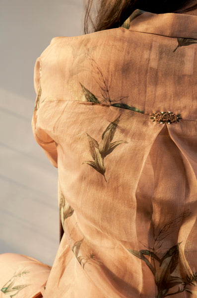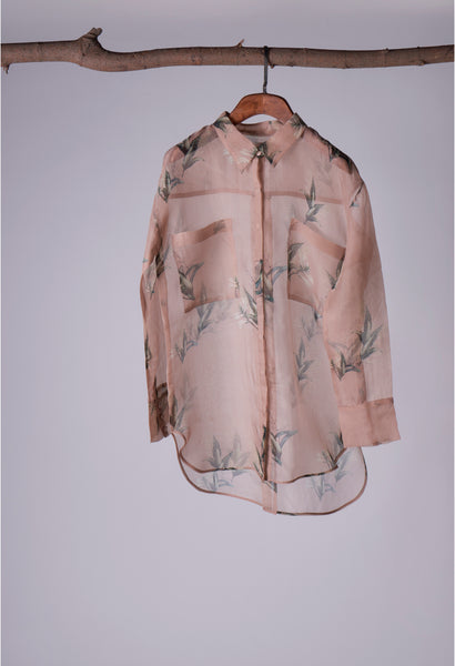 Organza shirt with embroidery detail on back and patch pockets (comes with a matching inner camisole)
