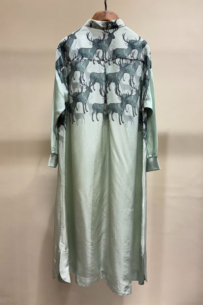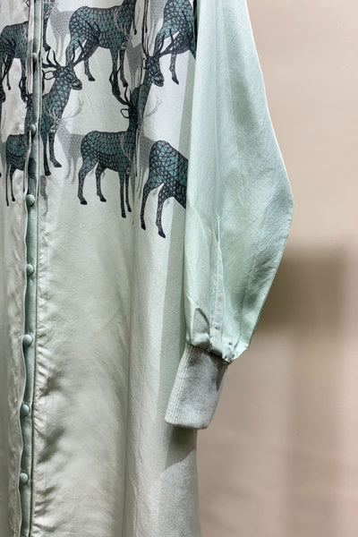 Mint printed dress with front button .