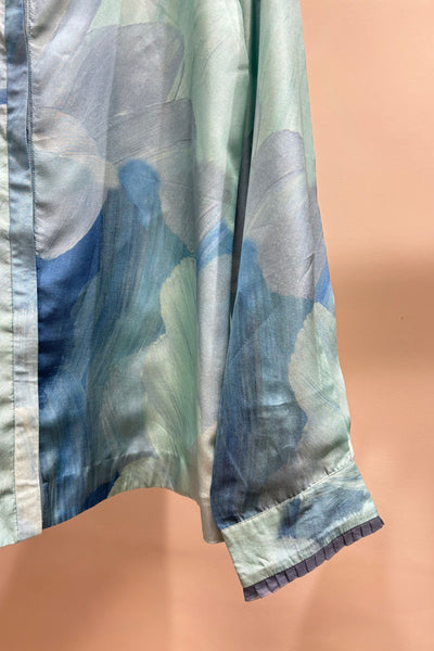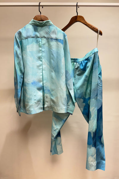 Printed Silk straight fit shirt paired with printed straight fit trousers.