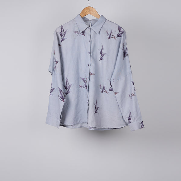 Printed linen shirt with drop shoulder & key hole at back yoke .