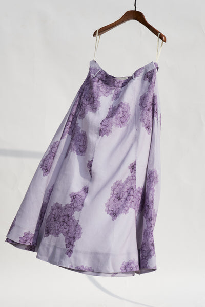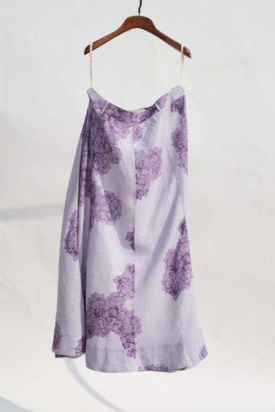 Mauve clutter printed linen A-line skirt with kantha stitch detailing .